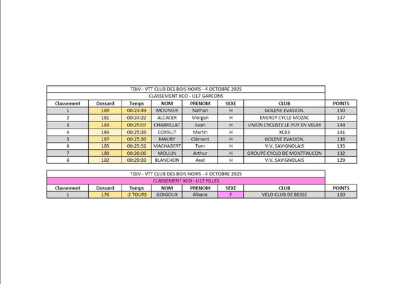 Vendredi 14 Novembre => 18h Chabreloche (salle du marais) Assemblées Générales Espace et VTT Club des Bois Noirs