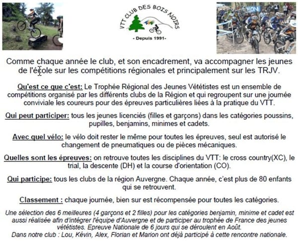Depuis quelques années le VTT-Club des Bois Noirs, organise une manche du TRJV sur la commune de Chabreloche: